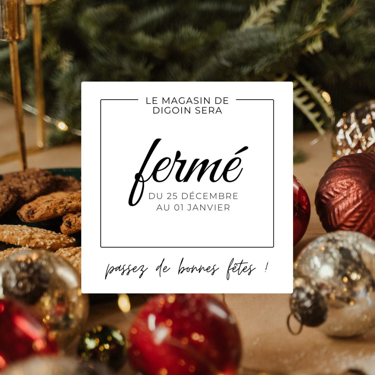 Le magasin de Digoin sera fermé du 25 Décembre 2024 au 01 Janvier 2025 inclus.