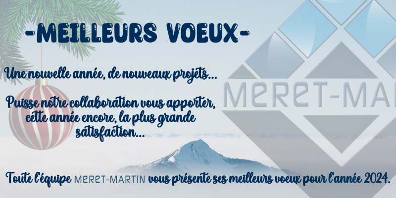 Toute l'équipe MERET-MARTIN Roanne & Digoin vous présente ses meilleurs vœux pour l'année 2024.